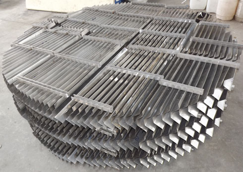 除霧器主要是由波形葉片、板片、卡條等固定裝置組成,在濕法脫硫,吸收塔在運行過程中,易產(chǎn)生粒徑為10--60微米的“霧”,“霧” 不僅含有水分,它還溶有硫酸、硫酸鹽、二氧化硫等,同時也造成風機、熱交換器及煙道的玷污和嚴重腐蝕,因此,濕法脫硫工藝上對吸收設(shè)備提出除霧的要求,被凈化的氣體在離開吸收塔之前要除霧。